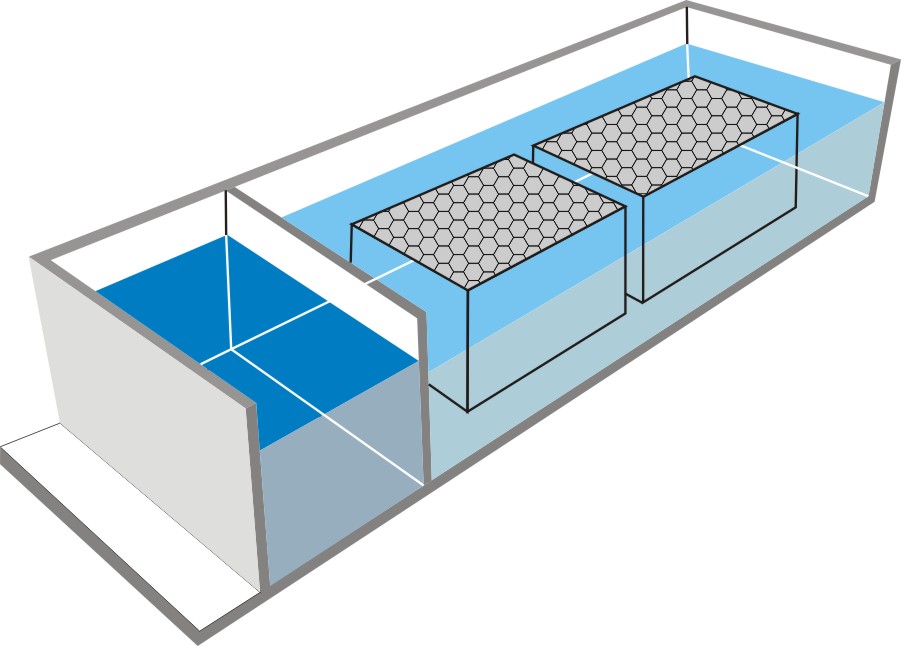 The second shape is consisting of balls fixed in a basket forming largest contact area to volume ratio. FFC media is static and fully submersed in the wastewater and exposed to the diffused air. A film adhering to the FFC, containing aerobic bacteria will be created. Bacteria exposed to diffused air and the biomass will be activated and the aerobic digestion will take place. |